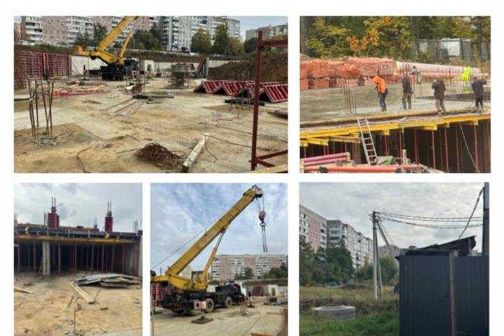 На сегодняшний день уже завершено бетонирование перекрытий цокольного этажа в ряде блоков. Ведутся работы по созданию железобетонных стен первого этажа, а также стен лестничных клеток и шахт лифтов. Планируется, что основные работы по стенам цокольного и части первого этажа будут завершены к концу октября.