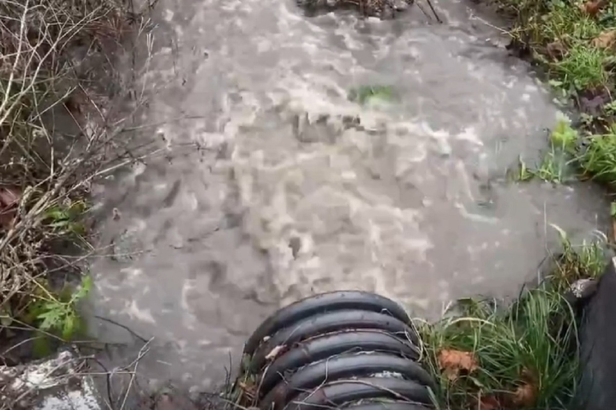 Как рассказали в общественной организации, на поверхности воды образовалась плёнка из канализационных отходов, огромным потоком стоки сбрасываются в реку через ливневку, стоит неприятный запах.