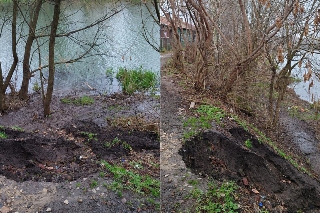 В Орле на берегу Орлика вблизи жилых домов обвалился грунт